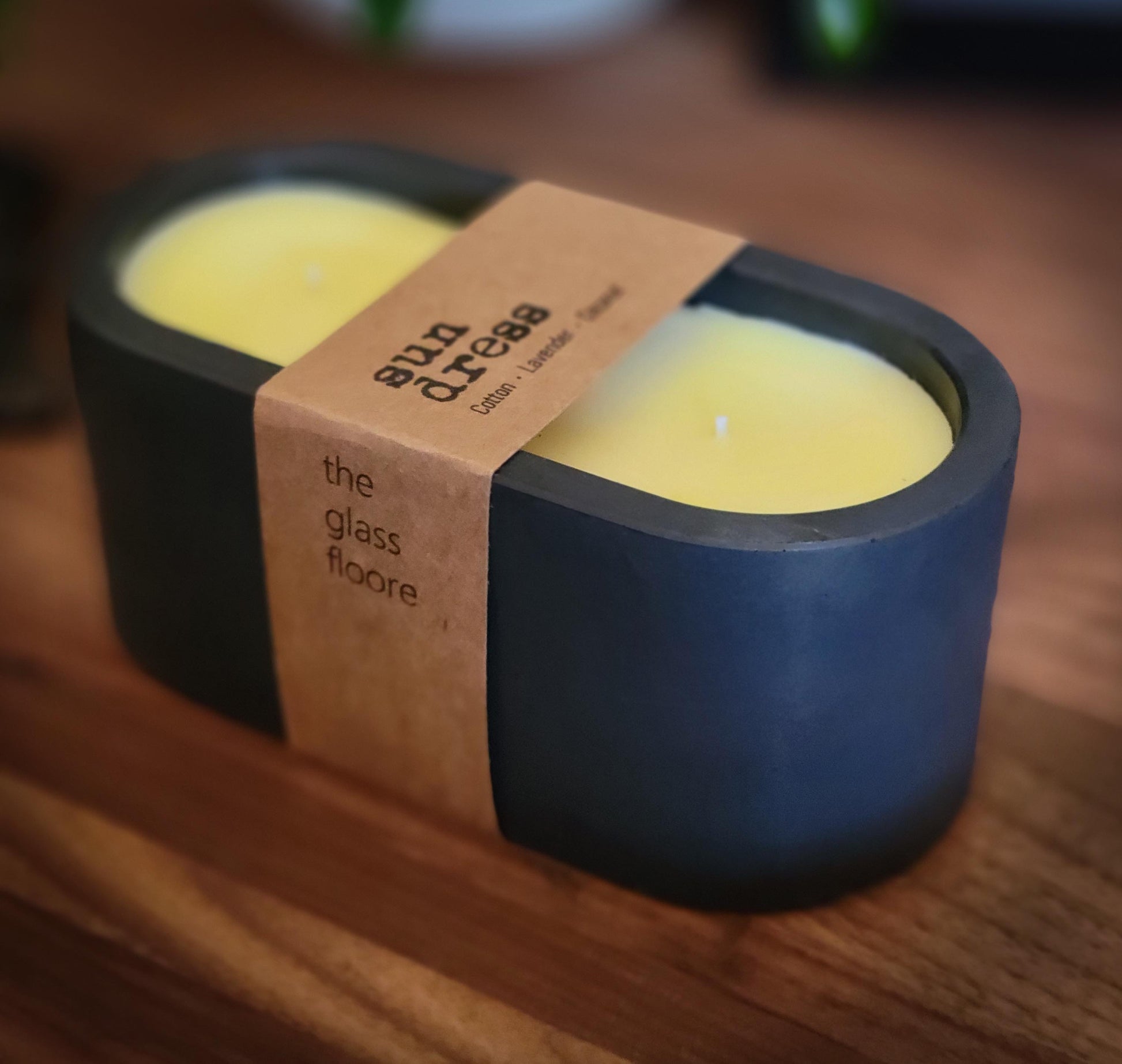 Our hand-crafted concrete candles are made with a highly scented soy wax blend providing a long, clean burn and luscious fragrance that fills a room.