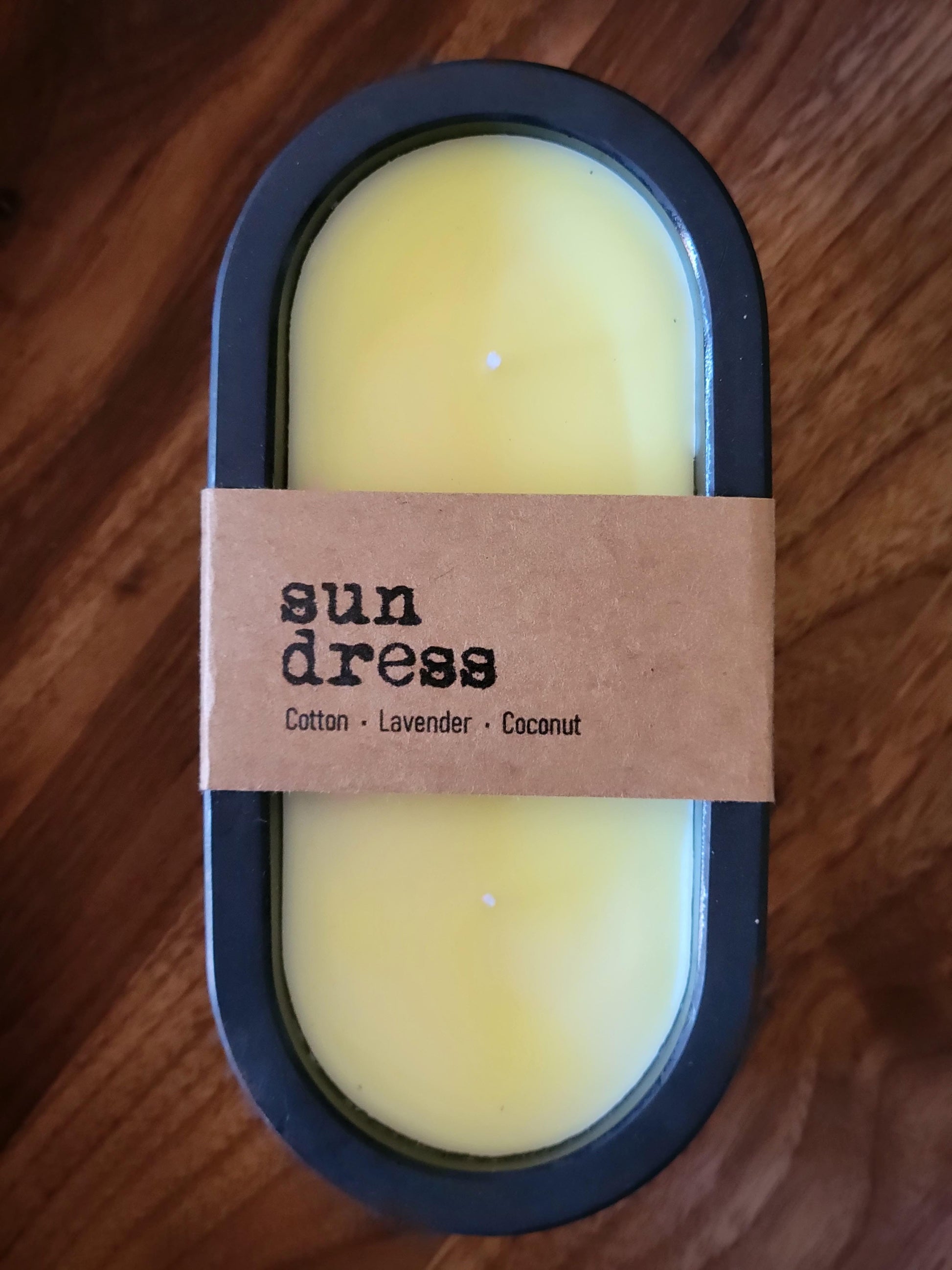 6.5" x 3.25" Oval Concrete 3 Wick Soy Candle - Sun Dress