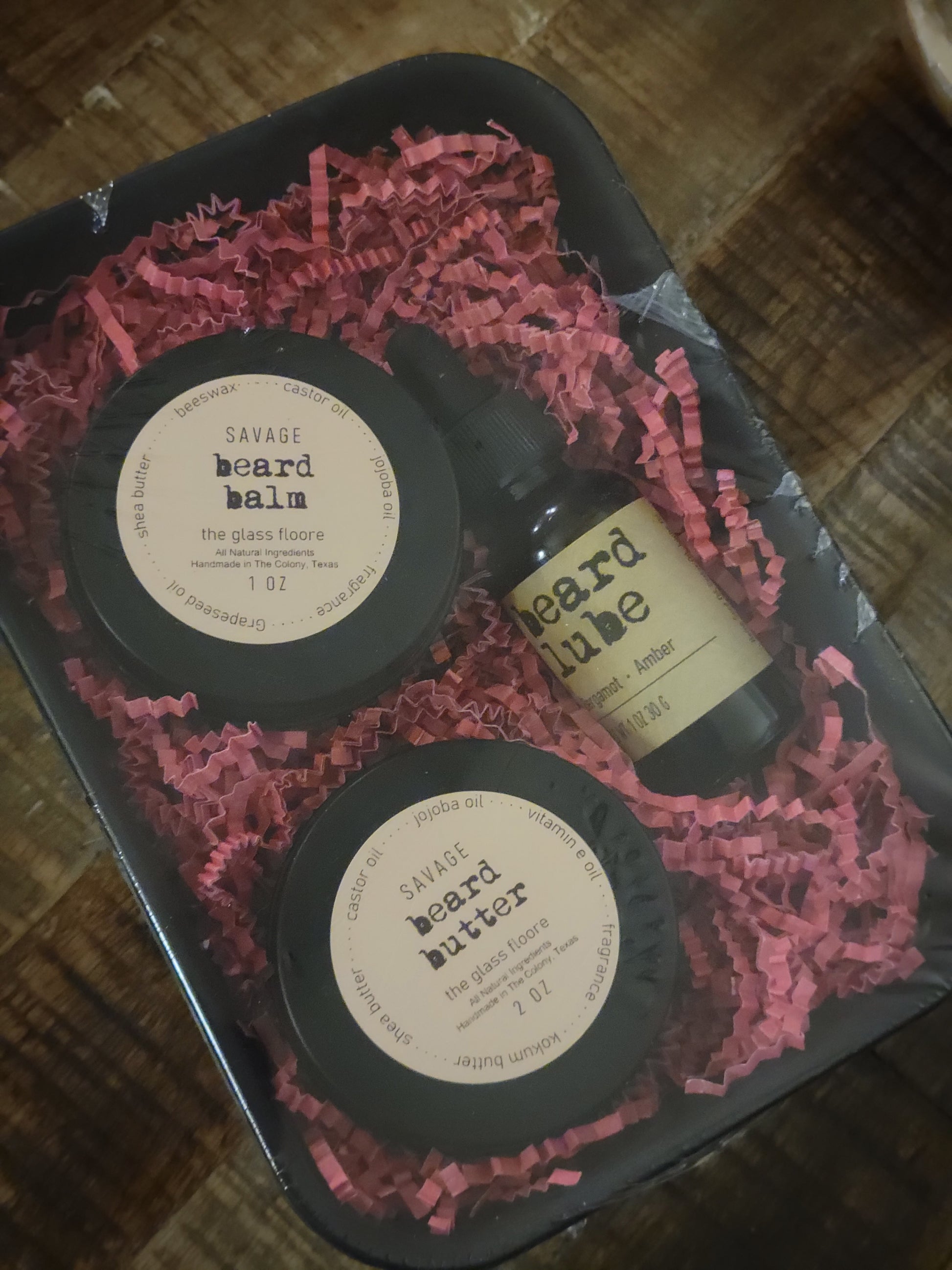 - Beard butter (2 oz.) in Savage scent: Moisturizes skin and softens hair