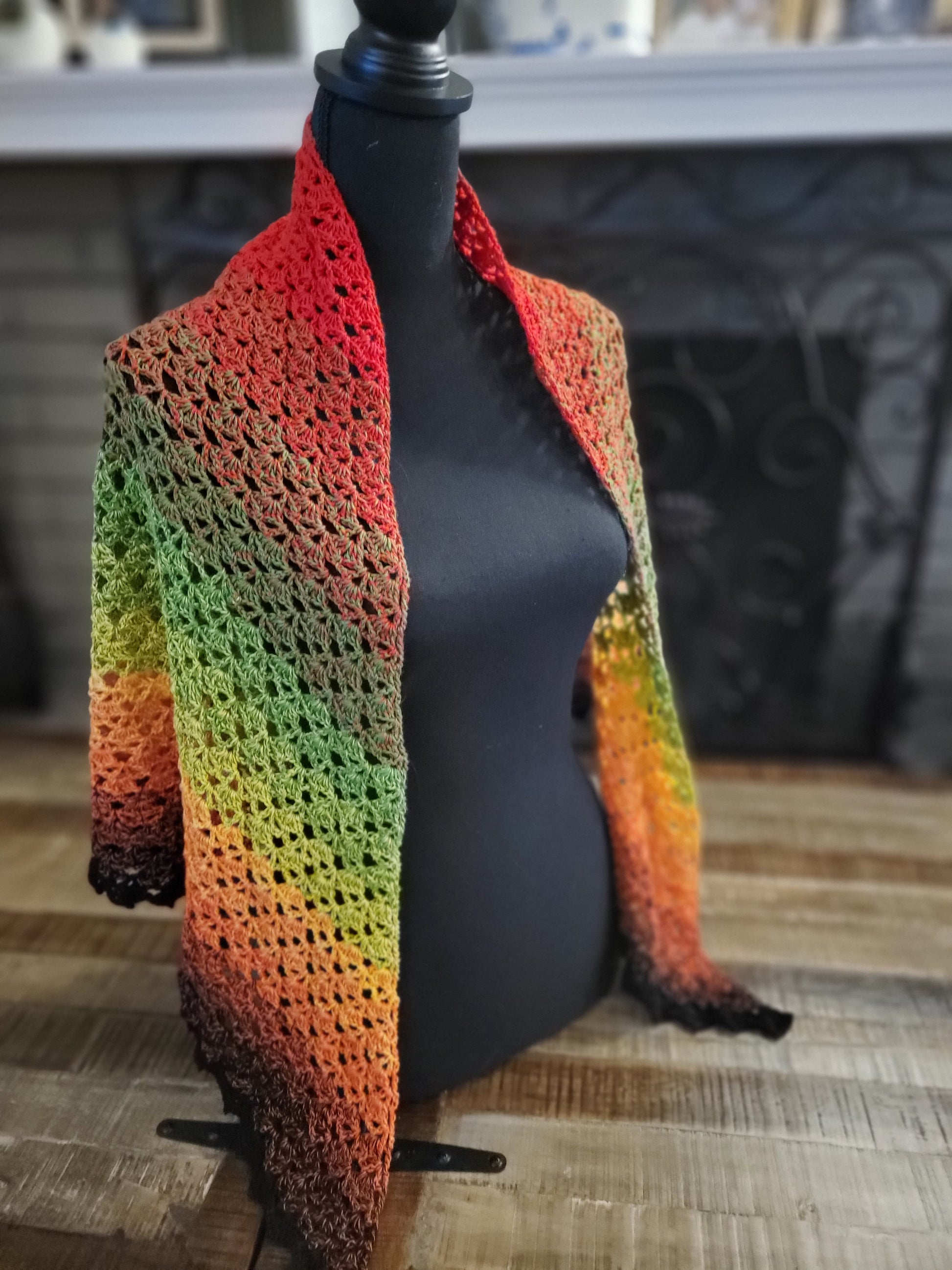 Crochet Shell Shawl - Red, Green, Yellow, Orange, Black