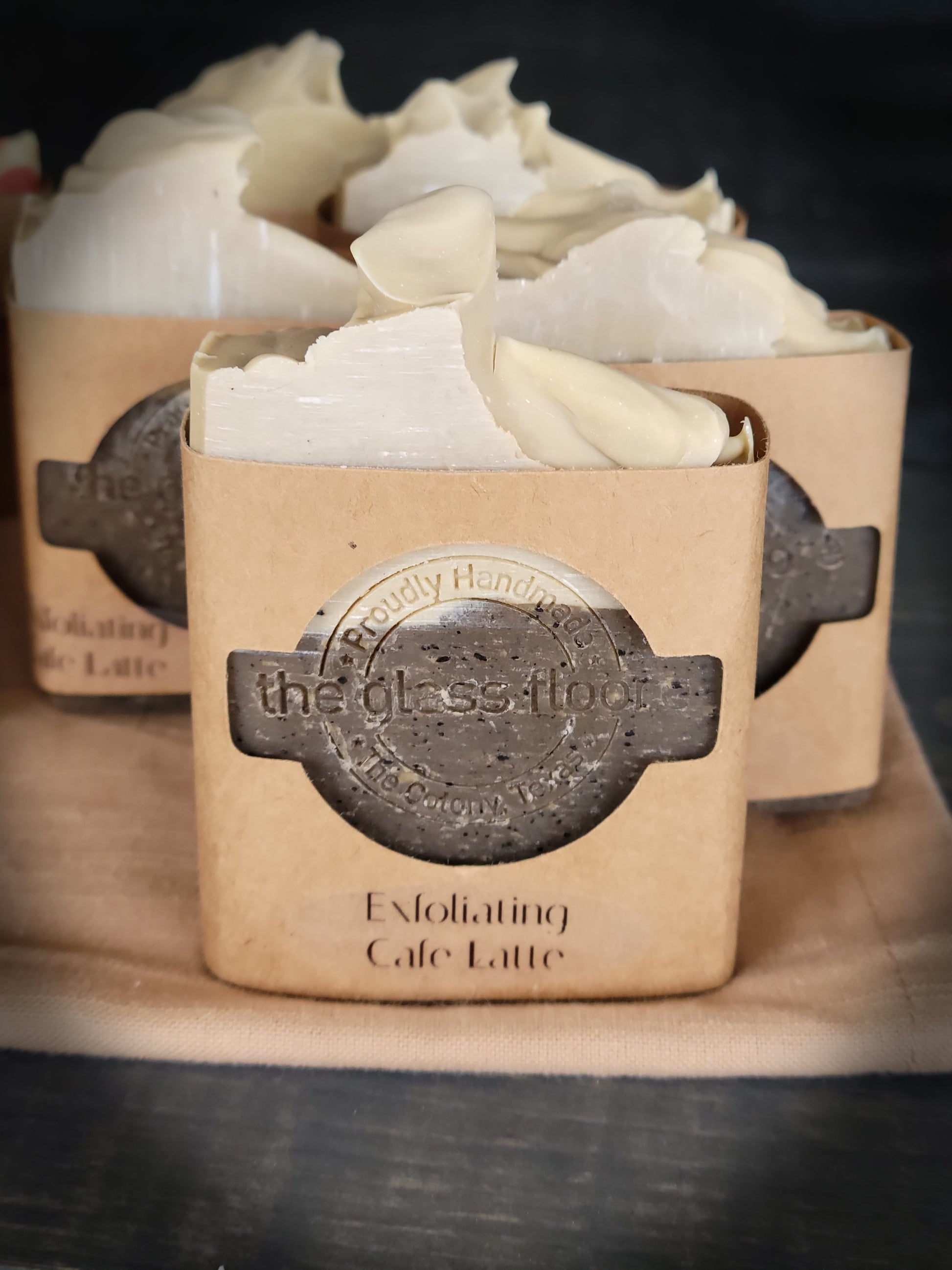 Ingredients: Ground espresso beans, Castor oil, coconut oil, palm kernel oil, olive oil, hemp seed oil, kokum butter, sodium hydroxide, fragrance, skin-safe colorant