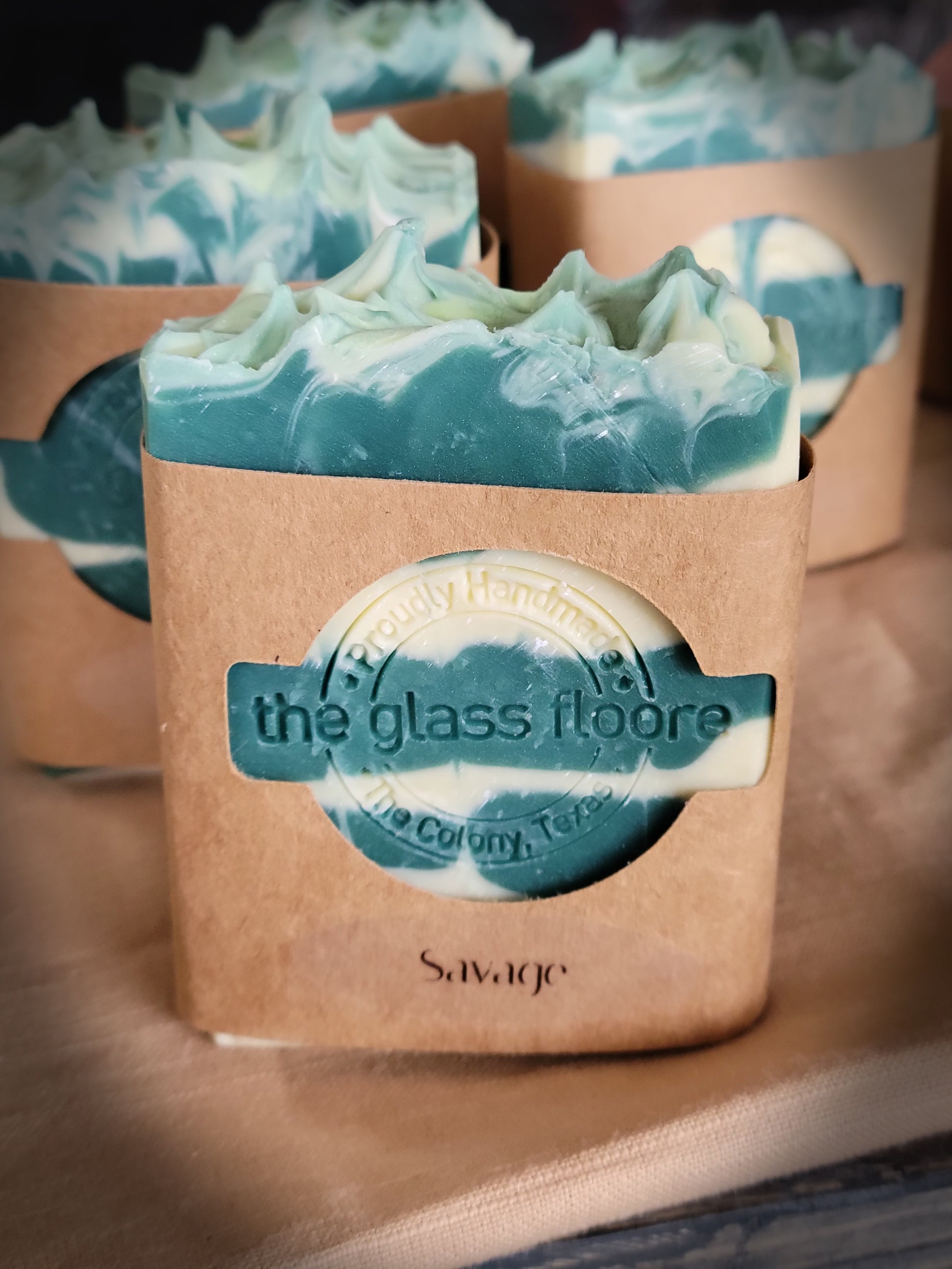 This beautiful two-toned soap is scented with bright notes of bergamot and amber, a scent we call "Savage".