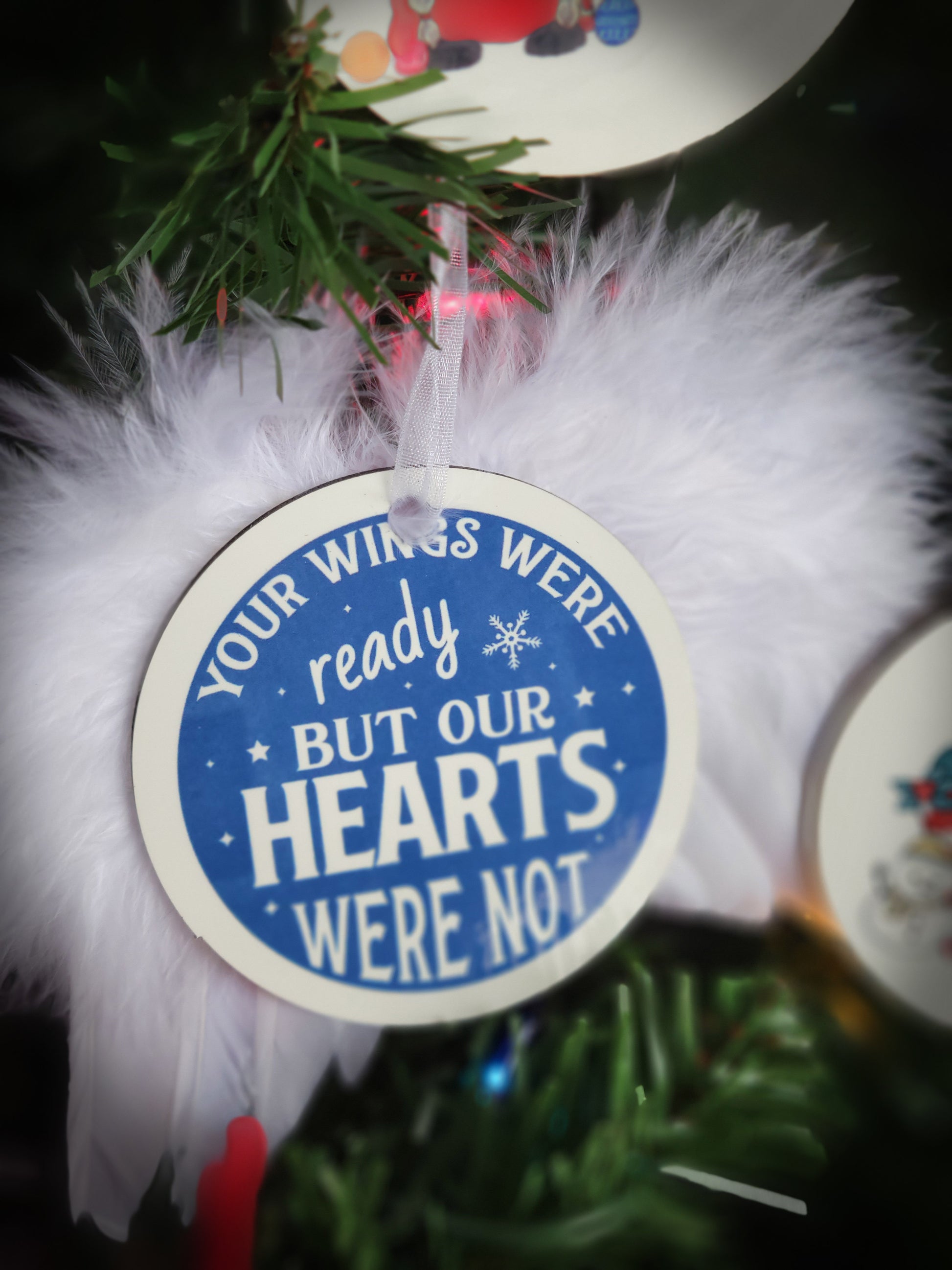 These angel wing ornament sets are a special placeholder where your loved one or fur baby can no longer be.