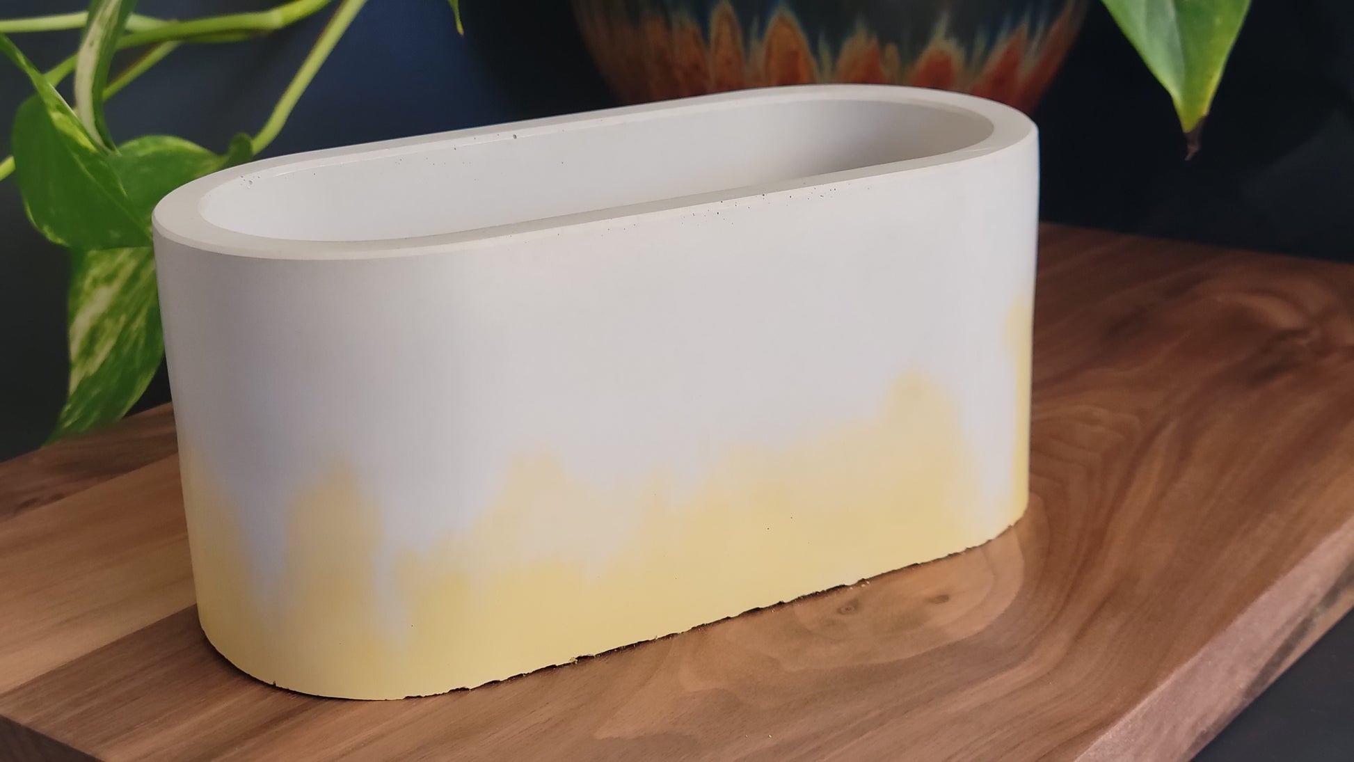 Oval Concrete 3 Wick Soy Candle (Yellow & White) - Choose Your Scent
