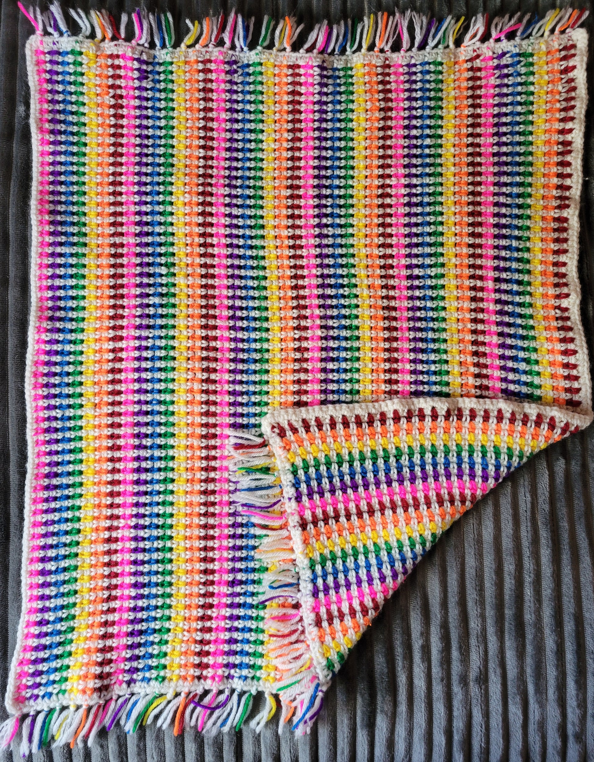 Rainbow Lovie/Stroller Crochet Blanket with Tassels (22" x 26")