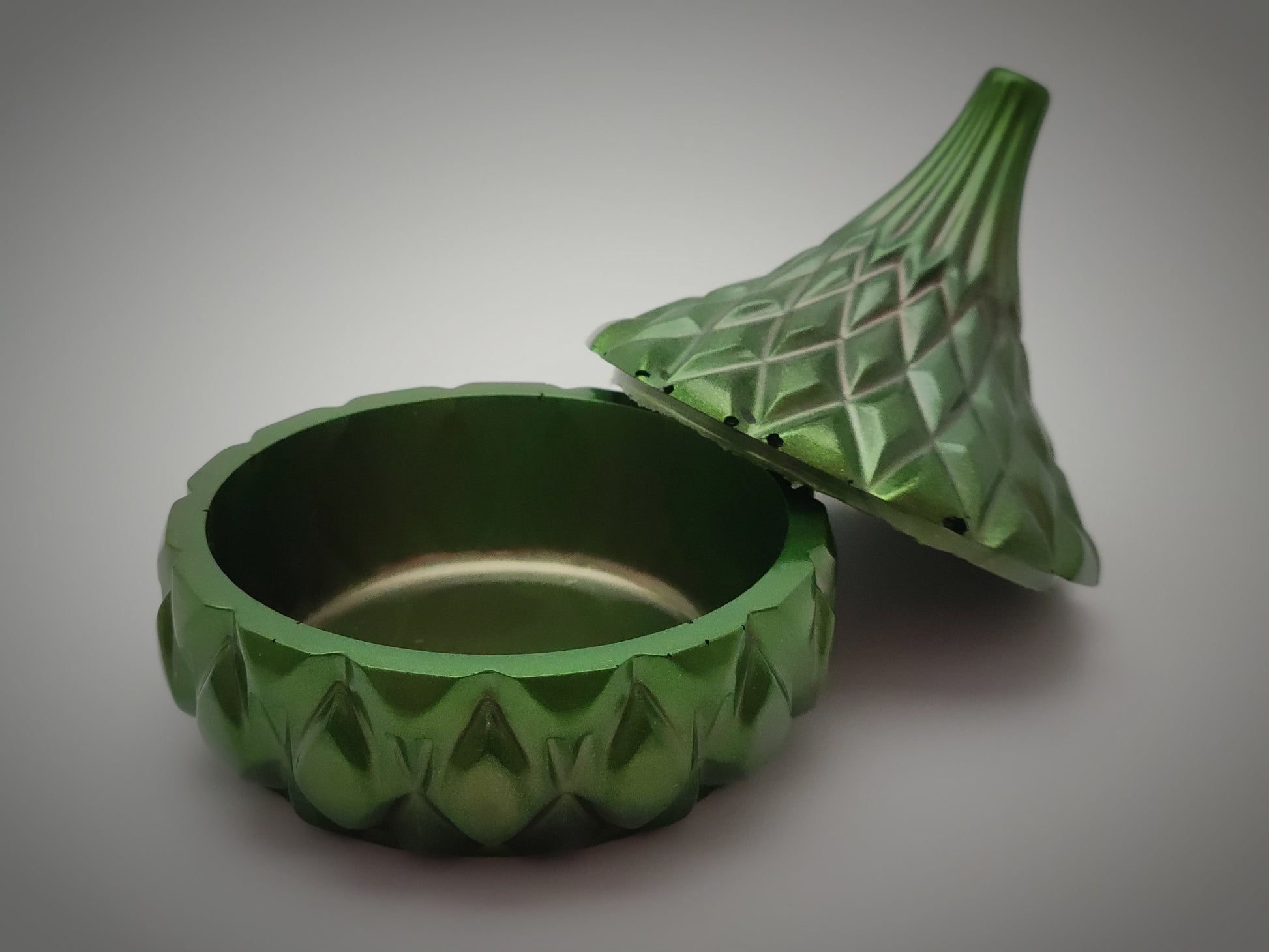This sparkly trinket box is perfect for storing small items. We can make this piece in any color and finish. Please send us a message to create one for you.