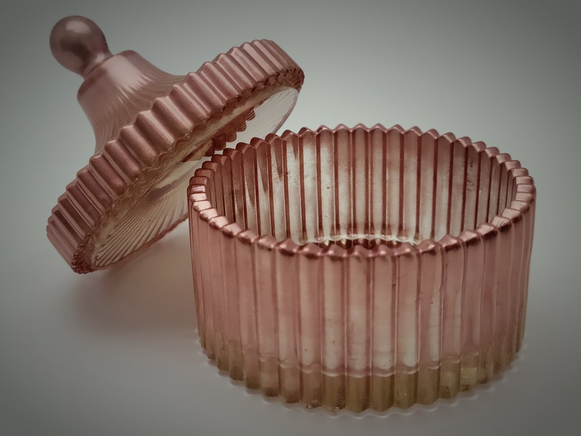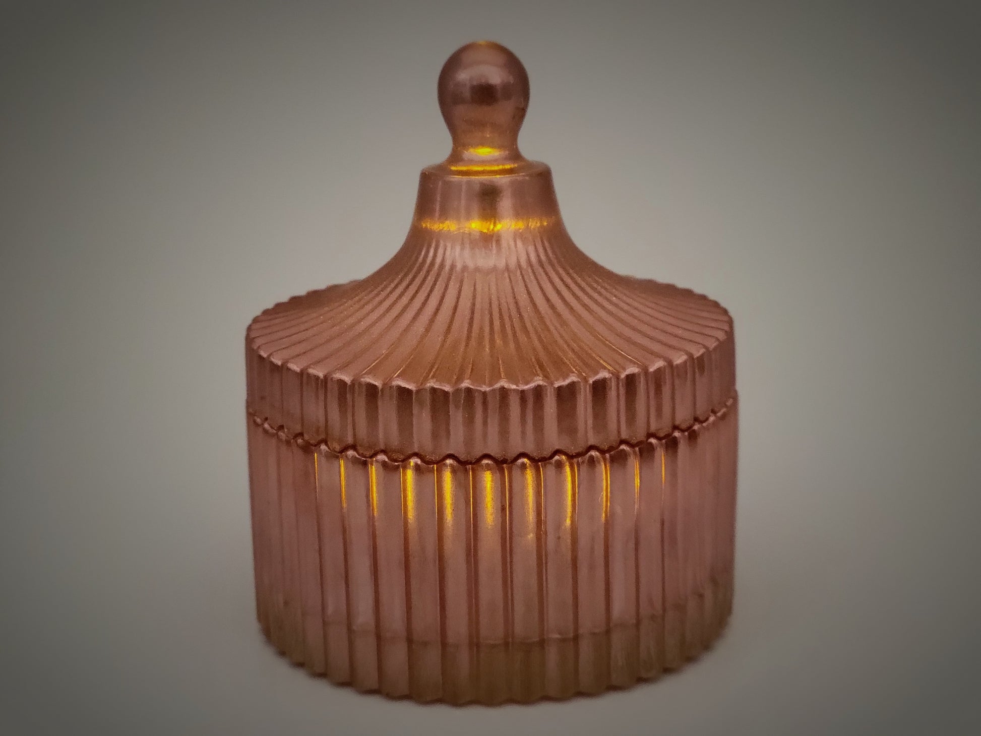 Trinket Box, LED Candle Holder, Metallic Rose Gold